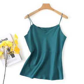 真丝吊带背心女内搭宽松外穿黑色无袖上衣春夏小西装桑...