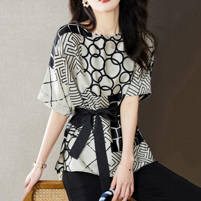 2022夏季新款七分袖洋气小衫修身显瘦时尚妈妈装宽...