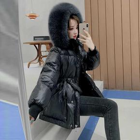 夏诗文网红新款中长款毛领连帽羽绒棉服女收腰加厚外套...