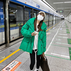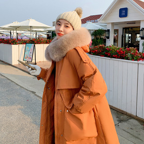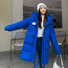 2022冬装新款韩版宽松中长款连帽修身加厚手套羽绒...
