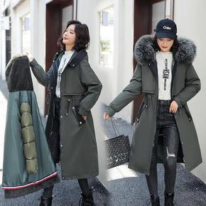 可拆卸内胆派克服女中长款过膝2022新品大码羽绒棉...