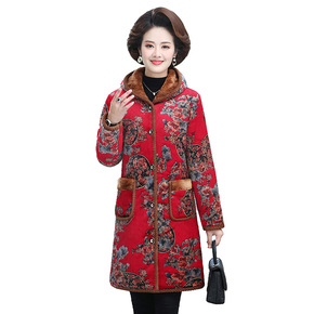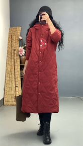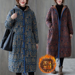 冬季新复古民族风棉麻刺绣格纹加棉加厚棉服女保暖显瘦...