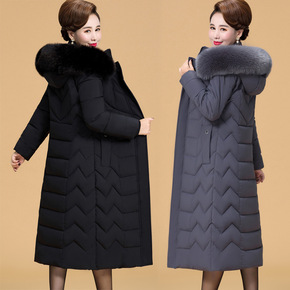实拍棉衣女中长2021新款真狐狸毛领羽绒棉服收腰p...