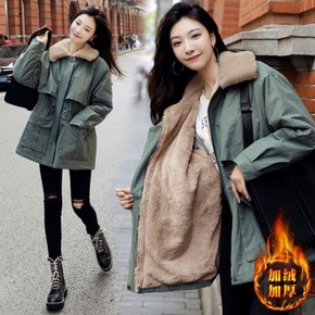 时尚韩版中长款棉服女2018冬季新款加厚棉袄宽松c...