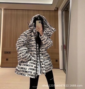 21秋冬新款潮牌潮酷满幅字母logo宽松显瘦连帽棉...