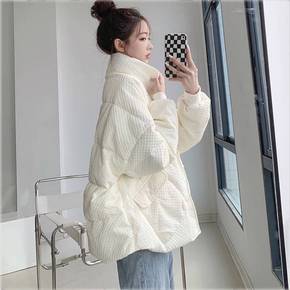 2021冬季新款棋盘格羊羔绒棉服情侣小众感over...