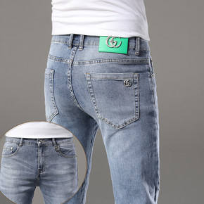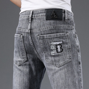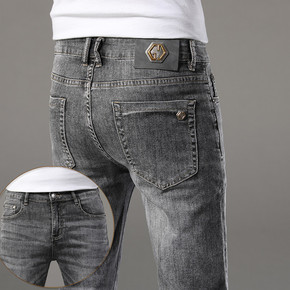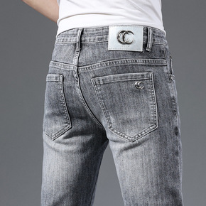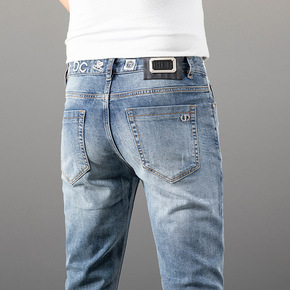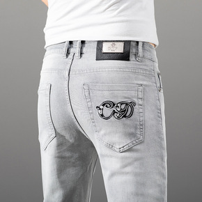 轻奢牛仔裤男20秋季新品修身小脚弹力浅色潮流欧洲站...