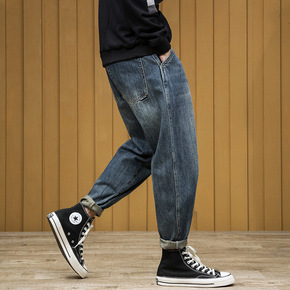 牛仔裤男士潮牌青少年韩版潮流宽松小脚工装裤春秋季弹...