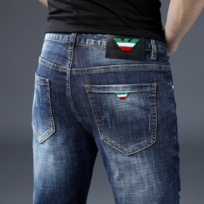 轻奢牛仔裤男21春季新品修身小脚弹力深色潮流欧洲站...