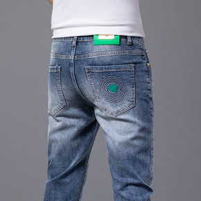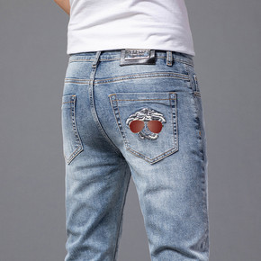 2021新款潮牌修身简约百搭复古牛仔裤男个性刺绣牛...