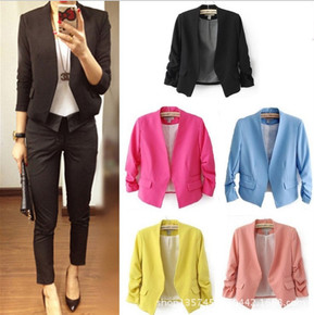 #ebay速卖通欧美秋冬新款纯色短款时尚拉链外搭夹...