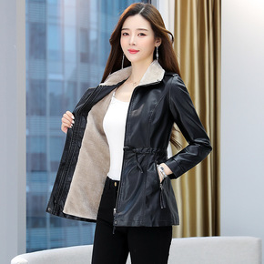 海宁绵羊皮大衣中长款收腰单皮女士皮外套真皮皮衣女2...
