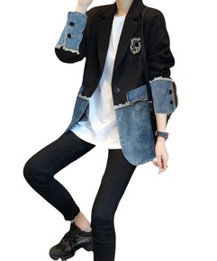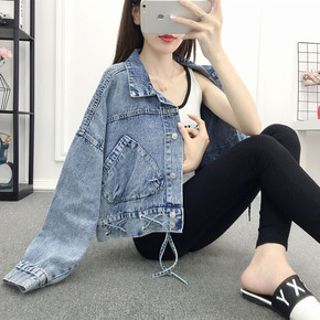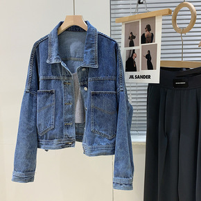 2022春装新款时髦复古牛仔外女套宽松显瘦短款夹克...