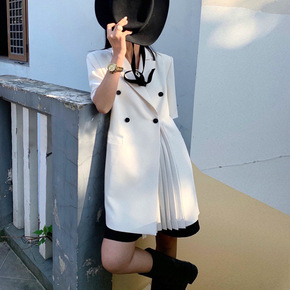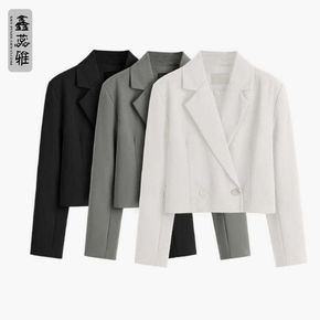 白色气质通勤双排扣欧美小西装ins款休闲纯色短款西...