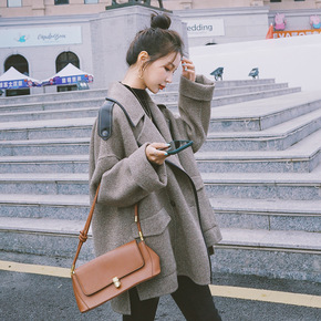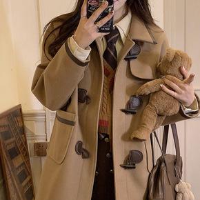 2020年秋冬季新款中长款长袖毛呢外套女羊绒呢子大...