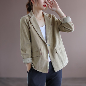 韩版简约气质显瘦单排扣复古小香风西装外套女短款20...