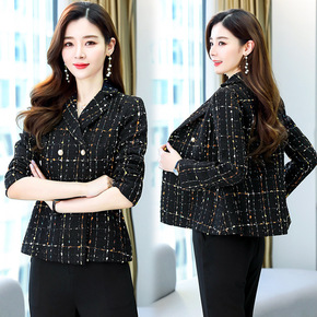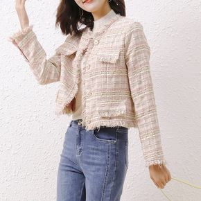 短款外套女2021新款春装韩版洋气香风外套小个子格...