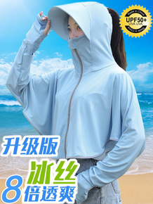 夏季薄款防晒衣 冰丝凉感骑车女披肩夏2021时尚透...