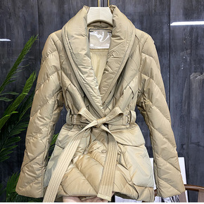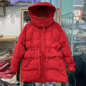 实拍2021年冬季新款港风中长款90白鸭绒羽绒服韩...