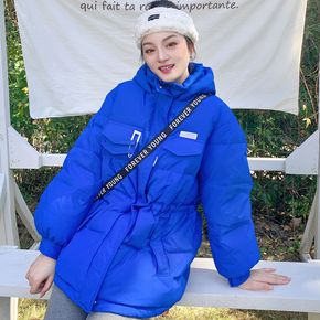 羽绒服女韩版克莱因蓝新款2021冬宽松加厚中长款连...