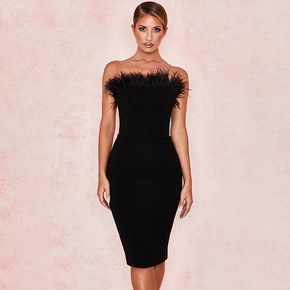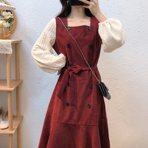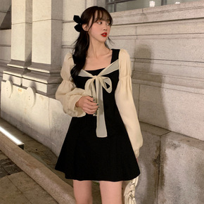2021秋冬季新款法式复古优雅显瘦拼接裙鱼尾裙方领...