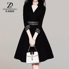 2022春季新款连衣裙秋冬纯色通勤V领收腰显瘦职业...