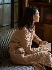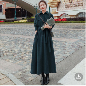 旅途 复古加棉开叉连衣裙女秋冬中长款加厚收腰过膝长...
