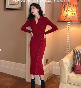 连衣裙 大码秋冬一件代发衣服女装套头显瘦中长裙跨境...