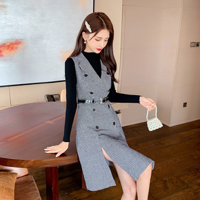 面料名称:涤纶 主图来源:实拍有模特 货源类别:现货 风格:淑女 图案:千鸟格 工艺:印花/...