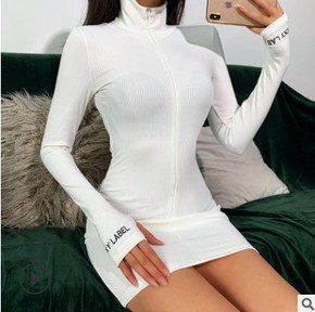 欧美跨境高领袖口刺绣连衣裙女2022春夏欧美运动风...