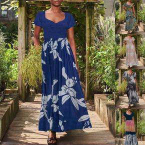 亚马逊独立站2022夏季短袖收腰型花朵印花气质通勤...