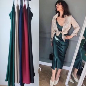 20033 现货新款无袖显瘦醋酸缎面连衣裙女神范吊...