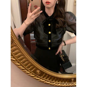 鹿阿姨德滋小姐黑色连衣裙感套装2022春季...