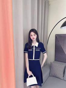 学院风polo领2022春季新款女装简约时尚收腰针...