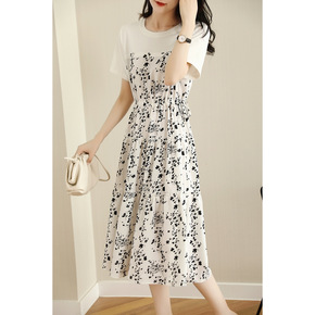 假两件拼接连衣裙2022夏季新款碎花桑蚕丝收腰显瘦...