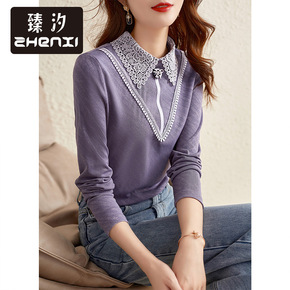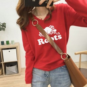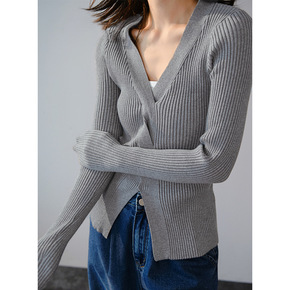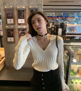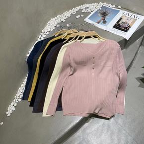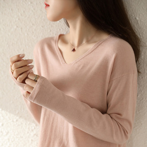 V领长袖针织衫女薄款打底毛衣韩版宽松休闲简约百搭内...