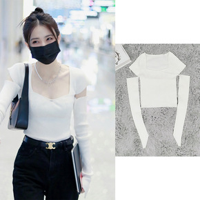 GENEI格内2021秋季新款韩版短款方领针织上衣...