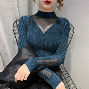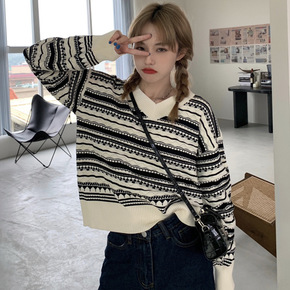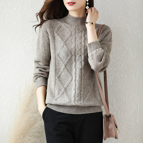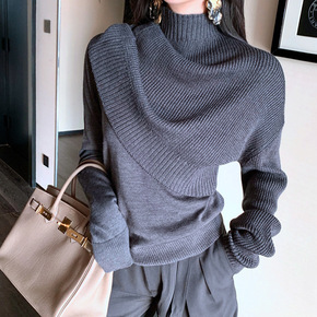 秋冬新款半高领长袖套头针织衫女装宽松短款显瘦洋气内...