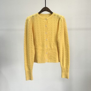 C家咔纷女装21秋冬新款绵羊毛镂空绞花收腰显肤白鹅...