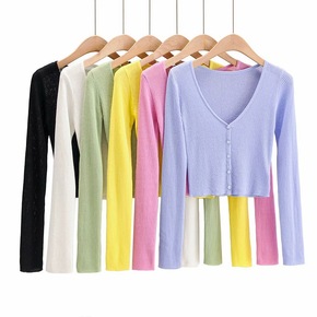 2021秋冬亚马逊新款外贸女装开襟休闲长袖针织经典...