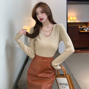 21NEW/百搭U领直角肩打底针织衫女秋季新款内搭...