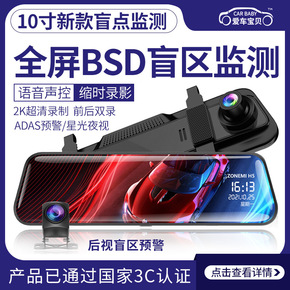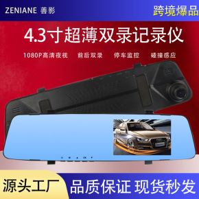 4.3寸汽车后视镜行车记录仪高清 前后双镜头倒车影...