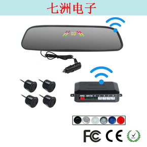 LCD彩屏后视镜无线倒车雷达免布线安装原车位置外贸...