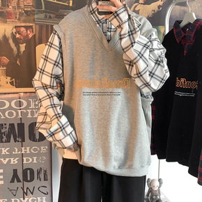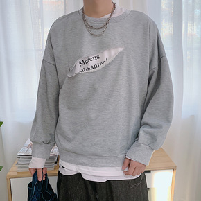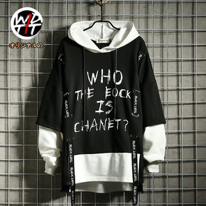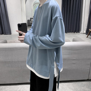 假两件长袖t恤男生潮牌ins港风秋季宽松卫衣韩版2...