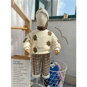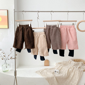韩版童装加绒加厚羊羔绒儿童裤子洋气 2021冬季假...