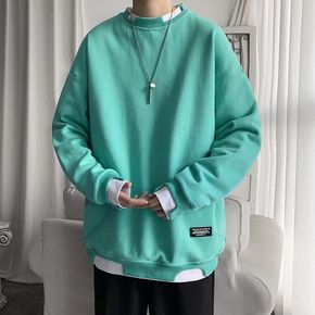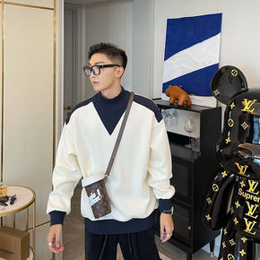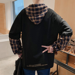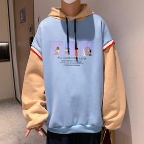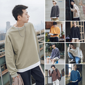 春季潮牌假两件拼接卫衣男宽松大码圆领秋冬加绒上衣男...