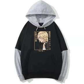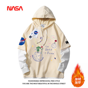 欧美街头潮牌嘻哈连帽加绒卫衣男飘带印花学生假两件h...