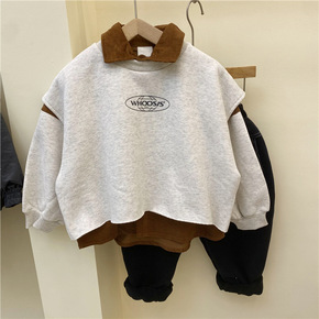 ins2020韩国冬季新款儿童刺绣小熊假两件高领加...