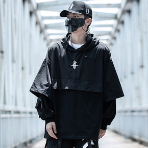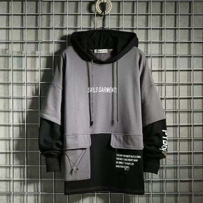 春秋季新款假两件卫衣男薄款嘻哈潮牌宽松工装口袋秋冬...