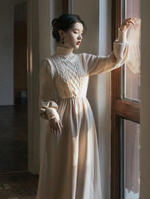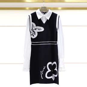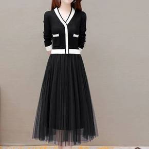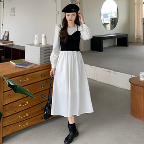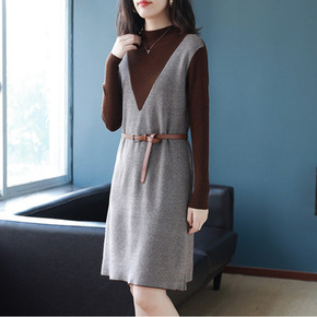 假两件高领针织长袖法式连衣裙女2021秋冬新款显瘦...